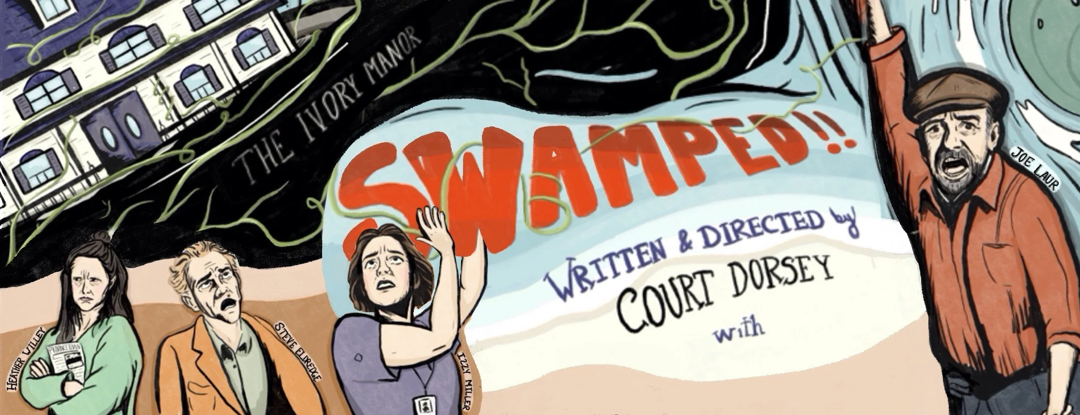 Written and directed by Court Dorsey, Swamped is a new play featuring Steve Eldredge, Joe Laur, Izzy Miller and Heather Willey. Sound design by Brian Bender, set by Tim Holcomb, costumes by Izzy Miller.